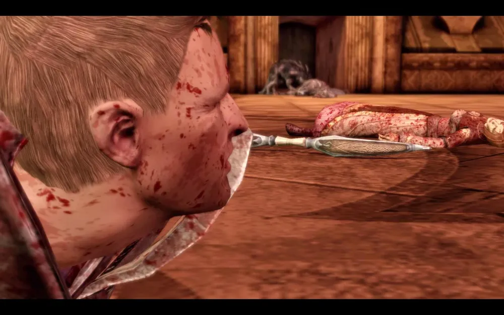 А что у нас в процессе игры? Мм…да ничего. Бегаем и геноцидим стражников и мирных жителей, которые постоянно спавнятся по 2-3 штуки. Изредка натыкаемся на группу стражников, с каким нибудь именным персонажем игры. Правда, их смерть трудно заметить. Bioware явно поскупились наскриптовать ролики их смертей. Даже смерть ваших компаньонов ничем не выделяется. Поэтому когда Огрена убили где то за углом я даже не знал что это он. Единственное что происходит при смерти компаньона или именного жителя это запись в журнал. Небольшой абзац о каждом без подробностей. Правда приятно убить нескольких мирных жителей. Вроде тех мамаш, что спорят о трактовке Песни. Ещё интересна была смерть Вейда и его партнера. В здания заходить нельзя. Квесты на уровне пойди-убей. Уровней нету. Дали только одну абилку то ли за побочный квест то ли за количество убитых. Диалогов тоже нет. Умения не нужны, как и весь лут, что падает. В Эльфинаже хоть какое то разнообразие. И вот с такими пирогами двигаемся мы к форту Драккон.