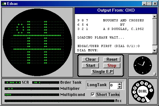 Позже, в 1952 году, появилась программа «OXO», имитирующая игру «крестики-нолики», созданная А.С. Дугласом как часть его докторской диссертации в Кембриджском Университете.Игра работала на большом университетском компьютере, известном как EDSAC (Electronic Delay Storage Automatic Calculator).