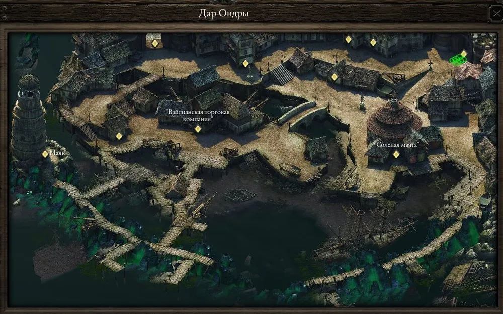 На этой локации есть два неплохих лука: один можно выкупить у рыночного торговца за немалые деньги, второй — получить за выполнение главного квеста в «Пристанище Адмеса» (либо снять с трупа). Для покупки хорошего снаряжения нужно очень много золота, да и замок необходимо отстраивать, поэтому увеличивайте команду. Полезно посетить Дар Ондры, выкупить у местных торговцев снаряжение (или взять его на заметку)