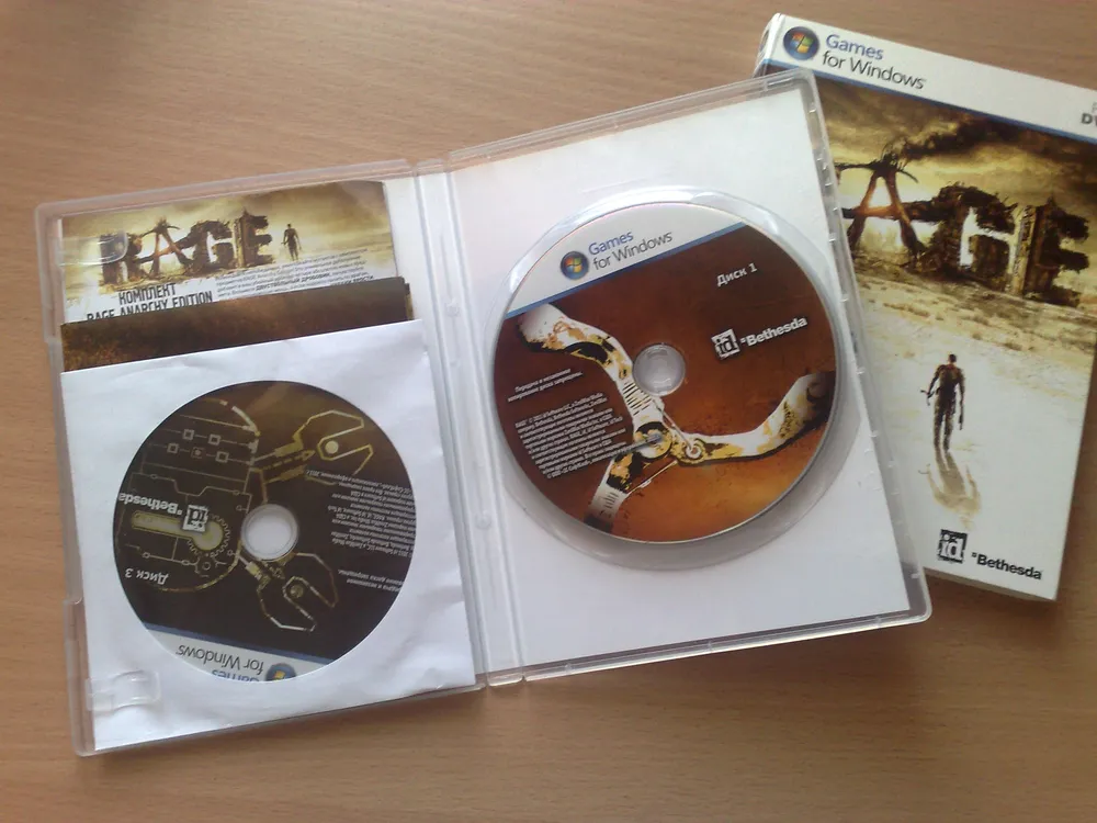 Только сегодня вспомнил, что RAGE наконец-то таки вышел и уже лежит на полках магазинов (ох уж эта работа). Поэтому я не раздумывая с утречка сбегал в ближайший магазин и успел отхватить последний DVD-BOX. Что бы не говорили геймеры про бокс, о том что такое издание денег не стоит, но уже в трёх магазинах моего города осталось по 1-2 копии Anarchy издания, а то и вовсе нет. Так что RAGE Anarchy Edition расходится как горячие пирожки. Ну да ладно, откроем же это издание и посмотрим, что же в нём на самом деле.