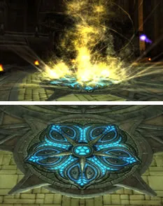Спускайтесь вниз с любой стороны. На полу вы увидите сферы. Они помогут вам зачистить мобов. Когда любой игрок подходит близко к сфере, то она начинает светиться и наносить АОЕ урон всем мобам в небольшом радиусе. Перемещайтесь группой от одной сферы к другой. Берите квест итем и поднимайтесь на верх к боссу. Учтите что мобы в этой комнате респавнятся и довольно быстро. Поднявшись, уничтожайте последний Death Shard и заходите в комнату с последним боссом.