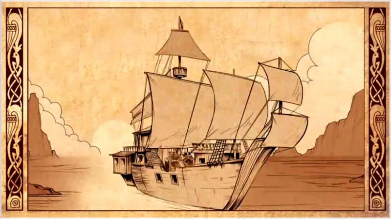 Кстати, многие в начале игры сталкиваются с непониманием, как торговать с иноземными государствами. Алгоритм следующий. Кликаете на корабль, опция «Загрузить корабль». Из багажа торговца перекладываете все, что вам нужно, в трюм. Закрываете. Торговец топает по сходням вниз. Кликаете на корабль – «Плыть для торговли». Открывается карта территорий. Если страна известна (даже если еще нет союза) – торговать с ней уже можно, кликайте иконку внизу справа. После возвращения снова откройте трюм и перегрузите все, что обменяли, в багаж. Некоторые забывают достать дерево или драгоценности, и не могут сдать квесты.