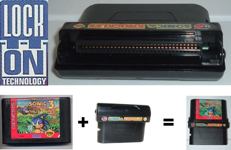 Оказывается некоторые картриджи действительно можно соединять. Эта функция, получившая название Lock On, и была применена для игры Sonic & Knuckles. Присоединив к ней картридж любого из трёх предыдущих Соников, игрок получал новый контент: в Sonic the Hedgehog — дополнительные уровни, в Sonic 2 - возможность игры за Наклза, а игра Sonic 3 становилась такой, какой разработчики задумывали её изначально — со всеми уровнями, игрой за трёх персонажей и даже дополнительными скриптовыми заставками.