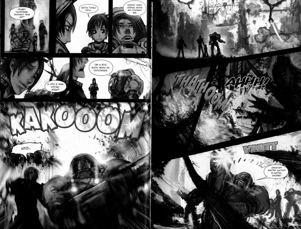 «Орудие войны» одна из четырех новел. Рисовка в стиле манги, красивая графика и высокая детализация выделяют его на общем фоне.