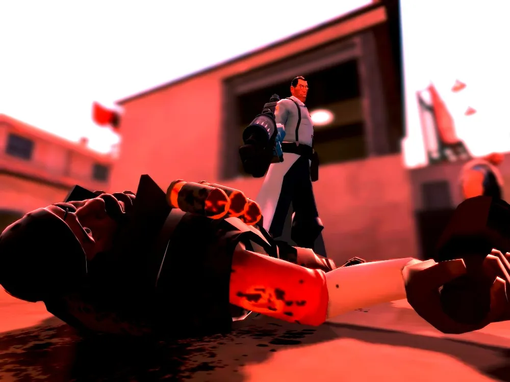 Спай офигенен, весь в крови , на заднем плане мертвый медик и недоумевающий толстяк ^_^ Класс!