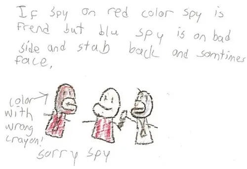 6. Если шпион красного цвета, шпион - друг, но синий шпион на плохой стороне и убивает в спину и иногда в лицо :D