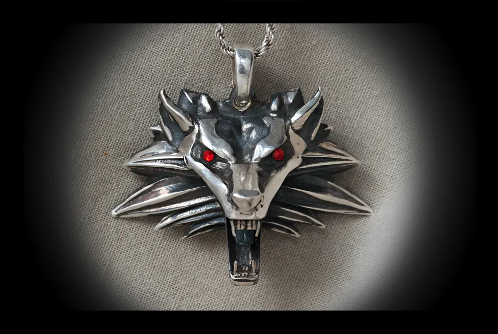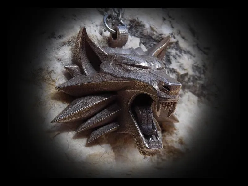 Ребята из нашей, российской мастерской "Ярило" вот уже несколько лет производят ведьмачьи медальоны - милые элегантные вещицы, которые нестыдно повесить на шею и носить в качестве ювелирных украшений. Производят они их из серебра, латуни и белой бронзы, причем ассортимент не ограничивается только медальоном школы Волка. Есть у них еще медальоны школы Кота и школы Змеи (Лето одобряет, я узнавала). Волк не идентичен, но близок к внутриигровому прототипу, а глаза из красных фианитиков лишь добавляют ощерившейся зверюге хищности и агрессивности.