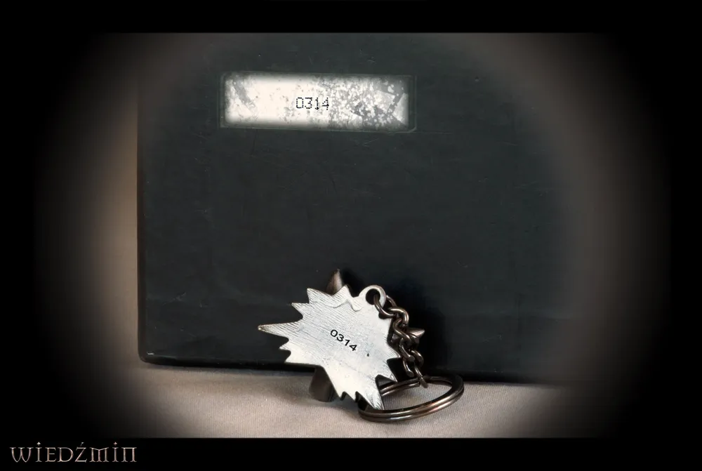 Изготовлены те брелки были из металла (какого конкретно, не знаю, но точно не из железа, проверяла магнитом) с покрытием оттенка металлик же, но несколько более темного, чем обычное железо или серебро. При небольшом размере, около 4 см в ширину, вес их вполне ощутим. Отличались они довольно-таки хорошей деталировкой, в частности недурно проработанной зубастой пастью и выщербленками на ушах. А еще все брелки были номерными, причем выгравированный на их оборотной стороне порядковый номер совпадал с номером на коробке коллекционного издания. Изначально, по утверждениям знающих людей, было выпущено 3000 польских и 500-800 чешско-словацких коллекционок с соответствующим количеством брелков. Потом, однако, штамповка брелков продолжилась (уж очень лакомой для поклонников игры плюшкой они были), и их общий тираж, судя по всему, перевалил за отметку в 4000 экз. У меня, по крайней мере, живет-поживает брелок за номером 4263. Приобретался он отдельно, без Edycja Kolekcjonerska в комплекте, и, возможно, с самого начала существовал в гордом одиночестве, ни к чему не прилагаясь. Тем не менее внешне он ничем не отличается от своего собрата-близнеца из коллекционной коробки № 0314.