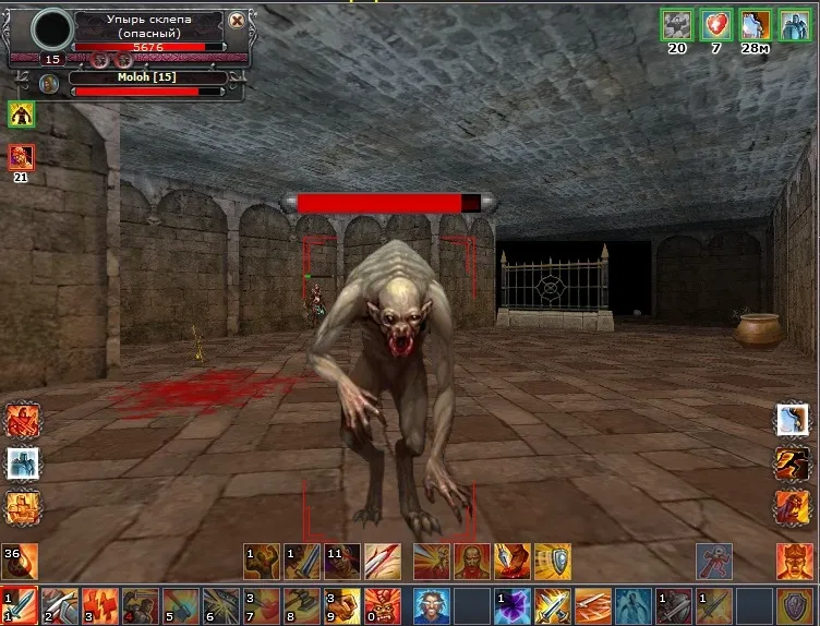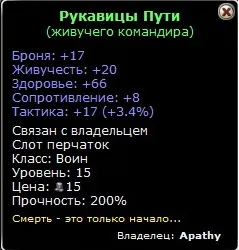 Использует бесплотность (защита от стали +38) Бьет на расстояние. Уходим под Защита от магии, Отчаяная защита и ждем хил от мага. Проходим моба.