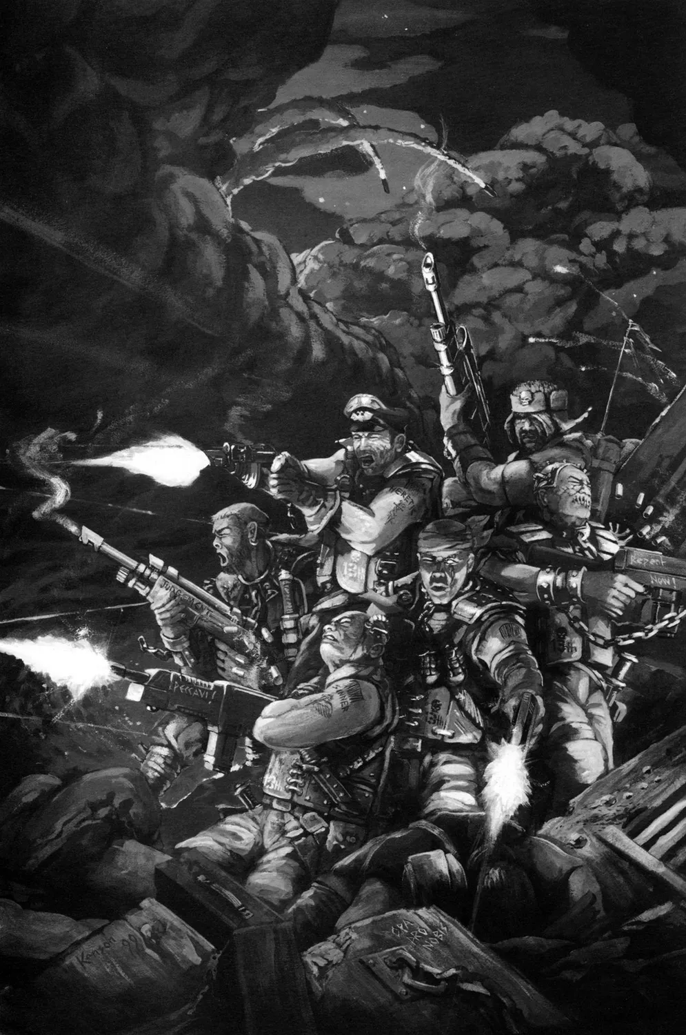 Едим молча; говорить-то не о чем. Странно, если сравнивать с жизнью на борту «Гордости Лофоса». Там нас в переделанных трюмах было по двести человек максимум, и друг друга мы ненавидели люто. Но мы были одним подразделением, были в отделениях и взводах, и это нас как-то сплочало. Были группки, которых мы придерживались, в которых общались, чтобы не поехать крышей и не перерезать себе глотку или там мозги вышибить в следующем бою. Вспомнилось, как после высадки на Ичаре-4, первой войне, куда мы попали, где-то восемьдесят-девяносто бойцов снесли себе головы в первую же неделю. Не знаю, виновны ли в этом тираниды или осознание того, что они будут воевать до тех пор, пока не умрут, без передышки и без помилования. Ну, на тот момент без помилования, конечно.