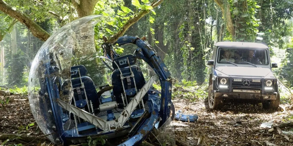 Тоже очень по-современному. Фраза забавна вдвойне, учитывая, как беззастенчиво зрителя тыкают лицом в логотип "Мерседеса" на капоте машины главного героя. Продакт плейсмент, тудыть его в качель. Но если в каких-нибудь "бондианах" зрители к этому уже привыкли, то здесь это кажется несколько странным. Еще веселее было бы увидеть на задницах динозавров, скажем, логотипы крупнейших фармацевтических компаний. Спонсор бесплатного wi-fi в парке - компания МТС! И внизу мелким-мелким шрифтом дописано: "Съеденным - скидки 50% на исходящие sms!". Гулять так гулять!