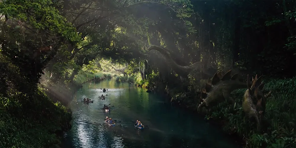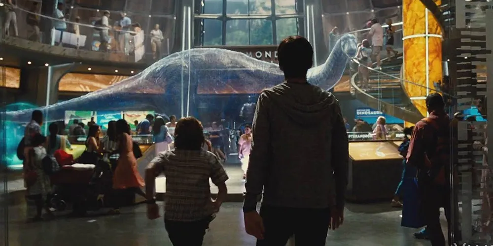 Не меньше внимания уделили декорациям парка. Многое из того, что вы увидите (или уже увидели) на экране, являет собой искусно сделанные павильоны, отстроенные в натуральную величину. Крупные планы и эффектные пролеты камеры над парком позволяют не просто посмотреть кино, а почувствовать себя зрителем и участником этого аттракциона. Парк выглядит до того реалистично, что тебе хочется самостоятельно там побывать, поклацать по кнопкам в главном центре, проплыть на лодке мимо водопоя травоядных и прикупить парочку сувениров родственникам, оставшимся на материке.