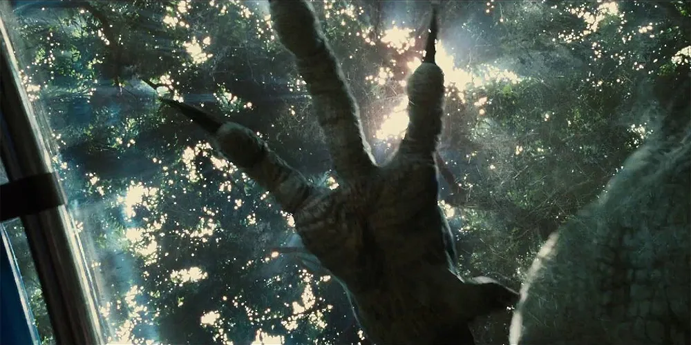 Дальше ситуация традиционно слетает с катушек. Стоило двум детишкам понаехать в гости к трудоголичной тете-управляющей, как генетический урод-индоминус, нашаманенный добрыми учеными, благополучно удирает из "вольера" и отправляется в пешее путешествие через остров навстречу потенциальной еде.