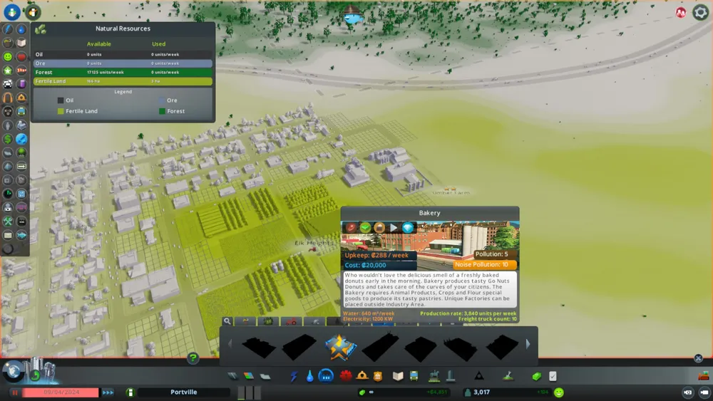 Интересно, что для многих индустрии зданий есть несколько декоративных вариантов. Скажем, для поля можно выбрать пшеницу, картофель, теплицу. Для садов — апельсины, груши, яблоки. Однако напомню, что всё это лишь изменение внешнего вида. На деле же что поле что сад всегда производит абстрактные «злаковые культуры», которые всегда можно «переработать» в животные продукты или муку на соответствующем предприятии.