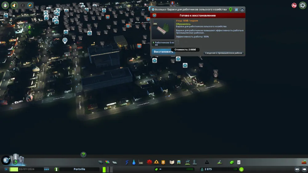 Правда, рабочих мест каждая фабрика или хозяйство тоже требуют не мало. Чаще всего 50 человек или больше. Так что если хотите развернуться по полной и максимизировать доход — для начала придётся отстроить немало жилья. Но с другой стороны, можно строить меньше промзоны — ведь рабочие места и так будут.
