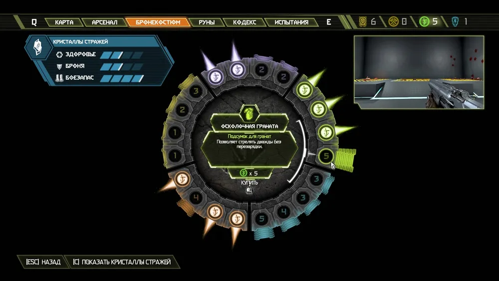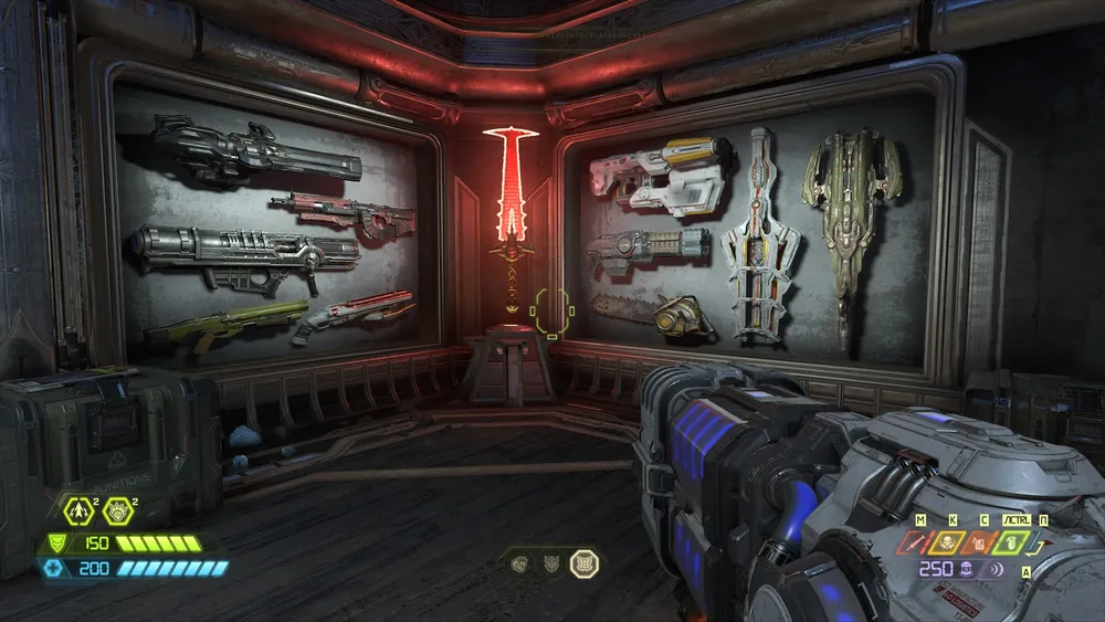 Закономерно то, что с увеличением вооружения выросло и количество новых пунктов в прокачке. Но количество, как вы понимаете, не всегда означает качество. Подчас за всем этим обилием неудобно следить. В этом адском танце с бензопилой, контролем уровня прожарки демончатины, надо не забыть отыскать бафы и успеть выполнить условия прокачки по модификациям для оружия, чтобы продвинуться в их улучшении (так как они напрямую влияют на вашу эффективность в бою). А также нужно искать печати Стражей с кристаллами для прокачки бронекостюма и самого Думгая.