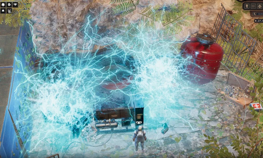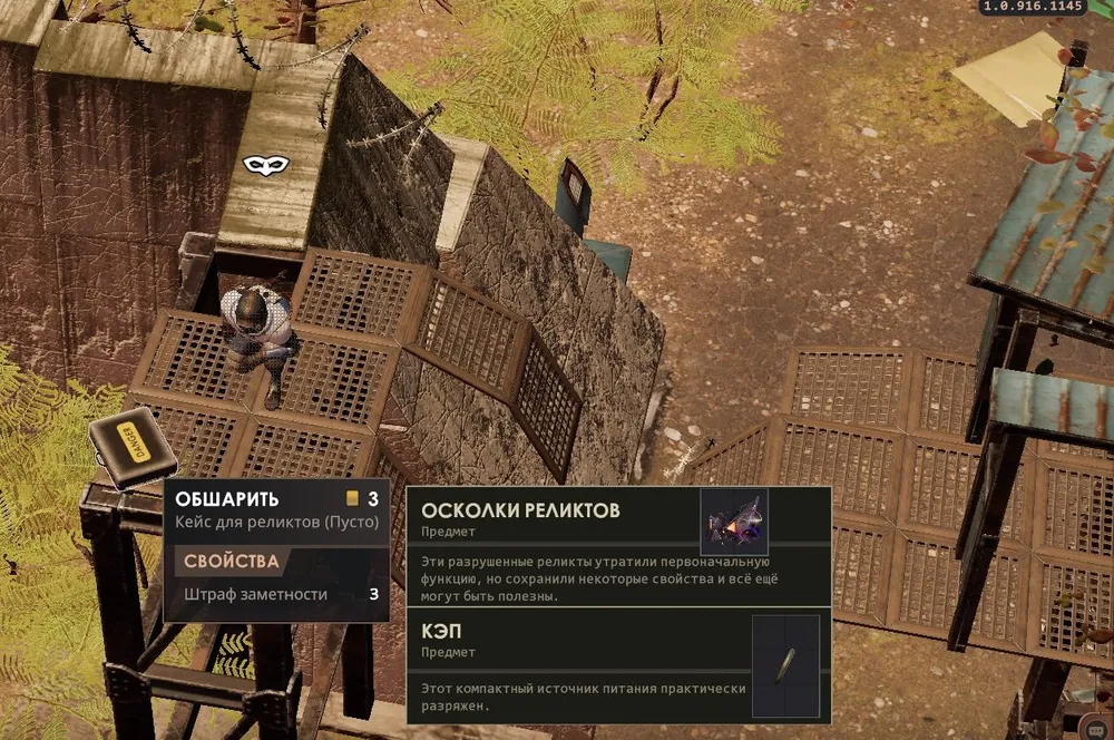 «Упавшая капсула» - снял с лифтовой кабины три листа необычного материала, необходимо сохранить: раз материал редкий, значит, для чего-то будет нужен. Несмотря на аномальное поле, легко подобрался ко всем ящикам и бочкам без использования болтов.