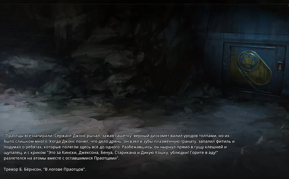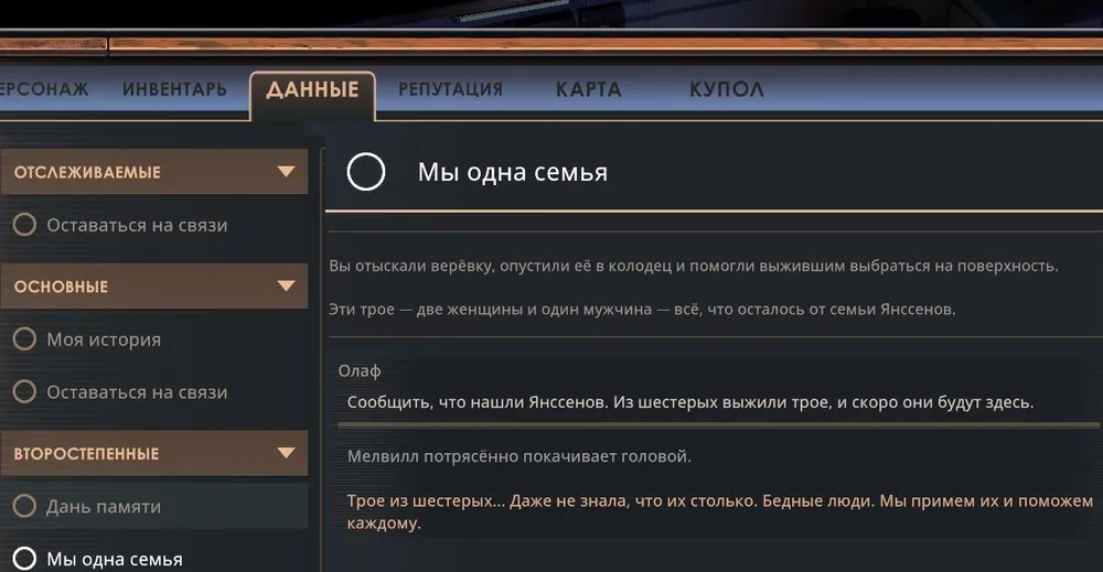 «Пикник», совершенно случайно выполнил задание, казавшееся мне неразрешимым: я полагал, что где-то в пустошах прячутся не найденные родственники Янссенов — кроме тех, которых я спас от гиен на «Стоянке переселенцев». Оказалось, что нужно было сообщить об их семье Одри Мелвилл, только и всего!