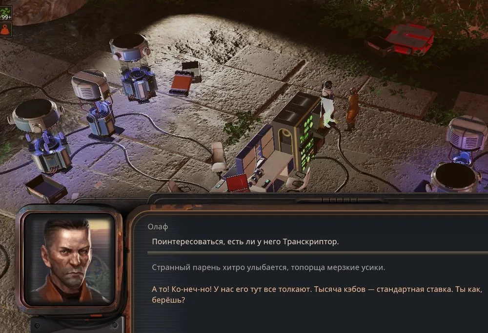 По базе «Фаланги» масса народа носится туда-сюда, поди, разбери, кому из них отдавать письмо? Спустился на склад и украдкой позаимствовал новый реликт; затем поговорил с сотрудником: ого! Он предлагает купить Транскриптор?!