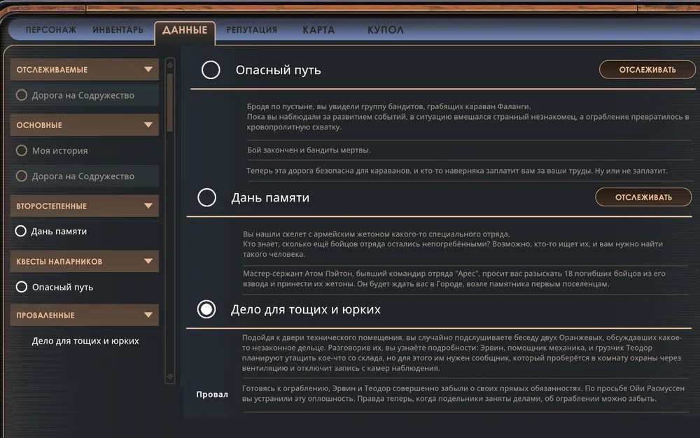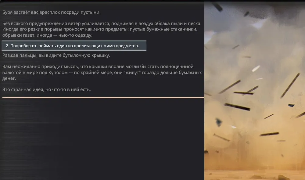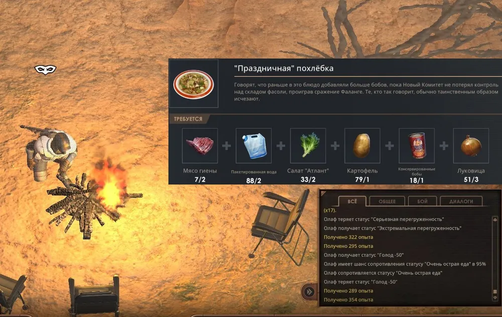 В общем, «теневая кулинария» приносит повару изрядно опыта; если бы не прекращение снабжения Купола извне, я бы не стал мотаться по пустошам в поисках врагов или ради выполнения заданий, а просто занимался бы готовкой!