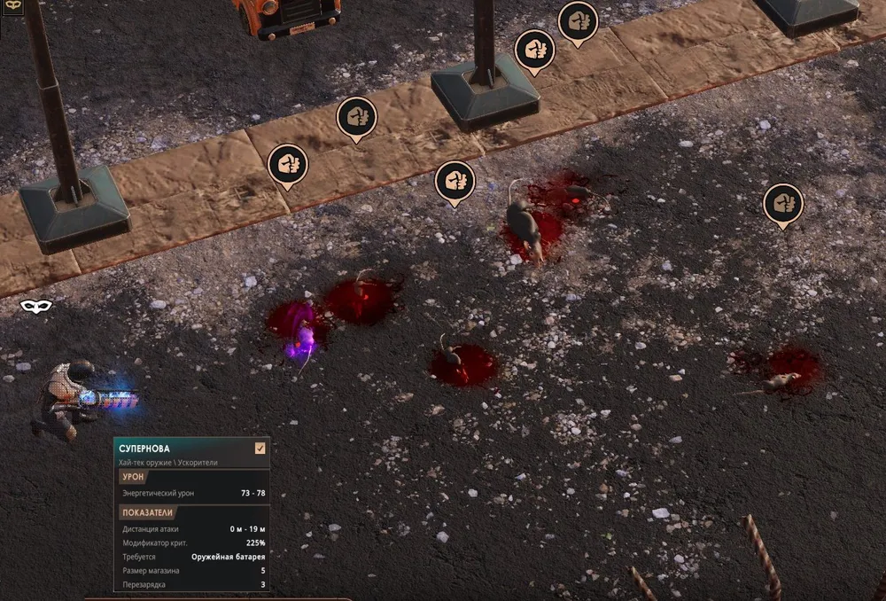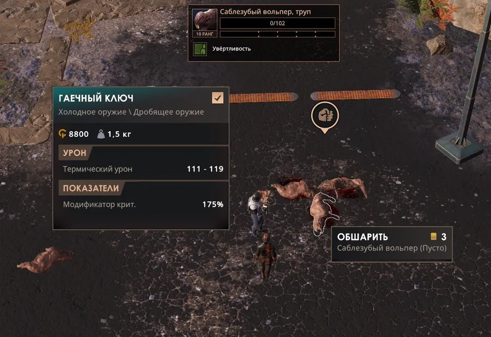 Гаечный ключ… Что?! Холодное оружие, наносящее термический урон?! Как так, он же не горит! Я понимаю, когда термический урон наносят зажигательные патроны (кстати, раньше они встречались тут, под Куполом), но гаечный ключ? Его применение также вызывает усталость и выбивает из невидимости. Против одиночных врагов годится, но против толпы — нет, усталость прикончит меня раньше.