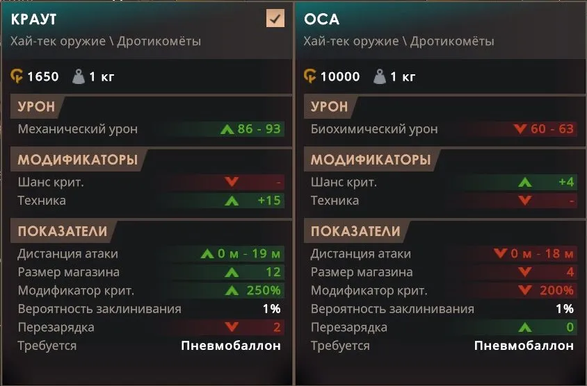 Хай-тек оружие, дротикомёты: краут-дротикомёт со способность «Реликтовый дротик» уступает снайперской винтовке только дальностью выстрела, но его невозможно применять каждый ход;