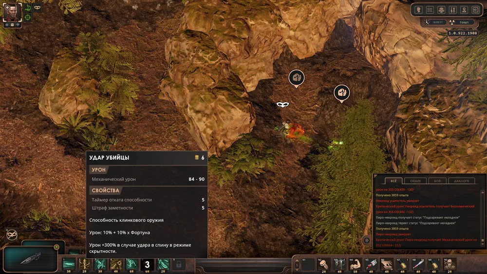 До предела увеличил точность, вероятность критического удара и отправился искать других врагов, некроидов. Завалил четверых при помощи «Акробатических пируэтов» и… умер от усталости. «Удар убийцы»? Жертва всё время перемещается, не так просто подобраться к ней во спины; если врагов много – приходится переходить в открытый бой. Словом, «Андзин» меня абсолютно не впечатлил.