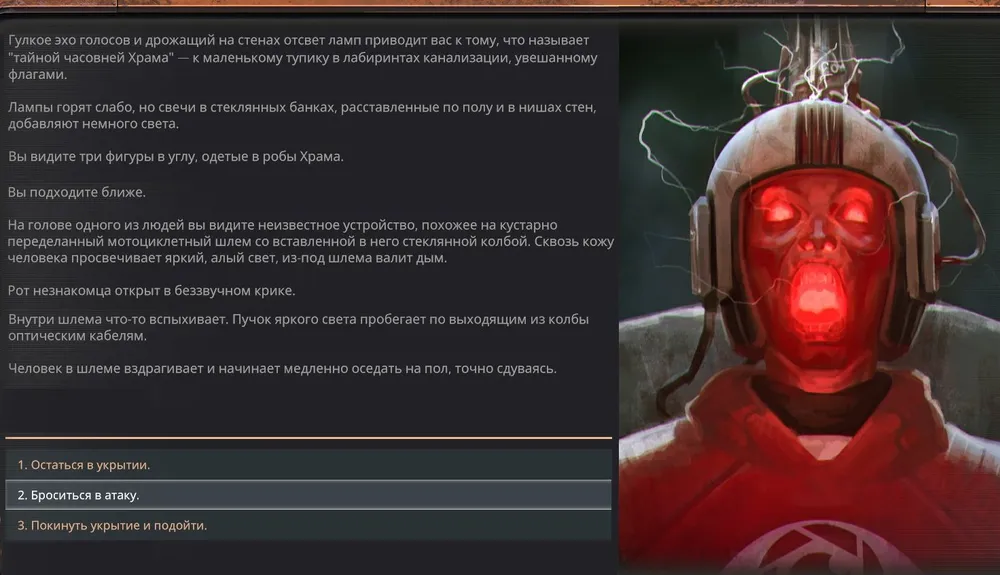 Спустился в канализацию и обнаружил засаду: потенциальные враги притворяются мёртвыми, да только развитое «Выживание» в сочетании с «Вниманием» всё равно позволяет выявить их; в самом углу площадки обнаружился какой-то таракан-кукловод; с него и начал. И тут же закончил: остальные враги моментально умерли. Таракан держал зомби под контролем? Надо было уничтожать его позже всех; потерял часть опыта…