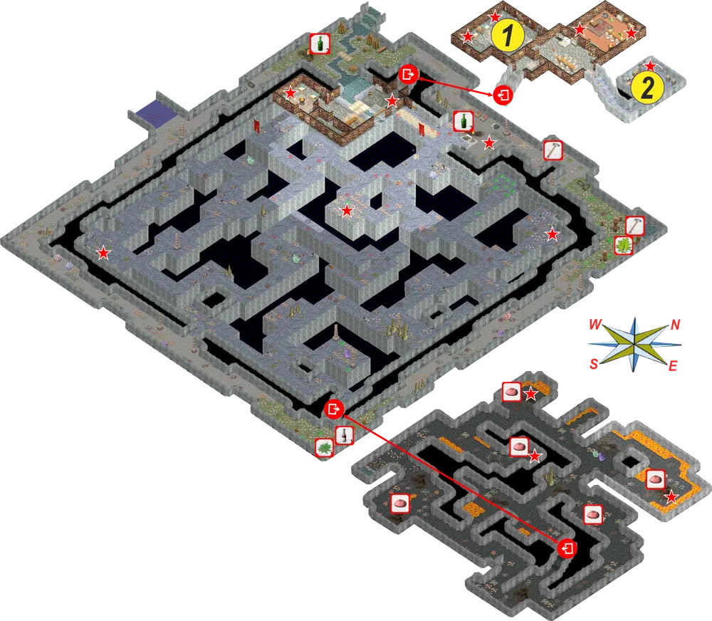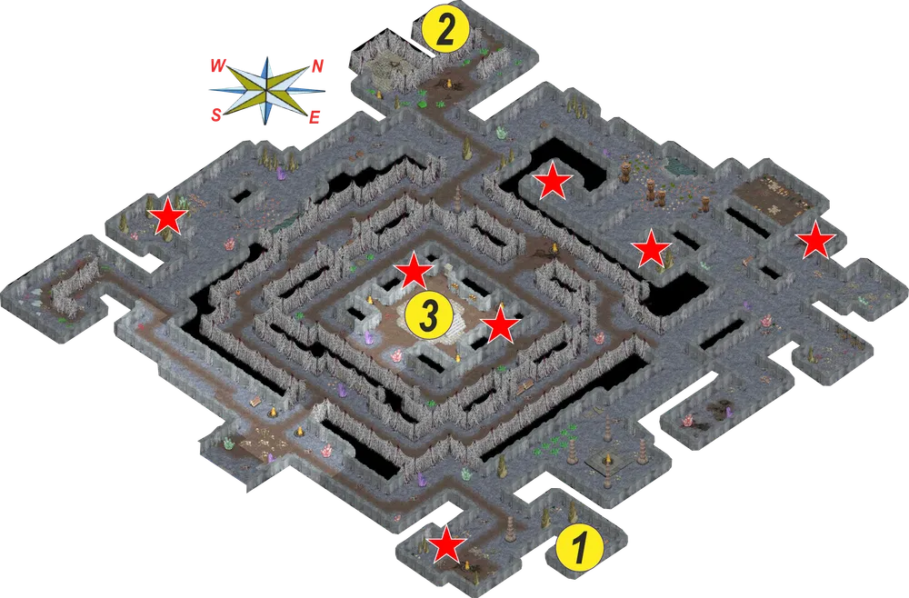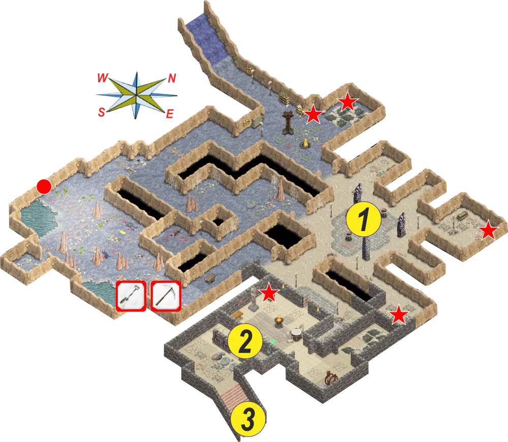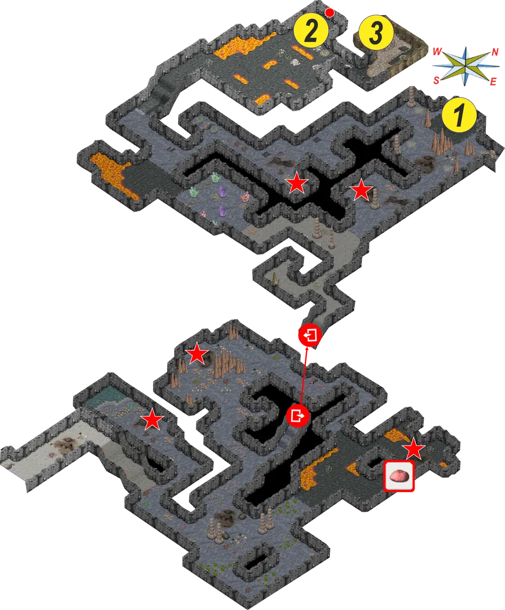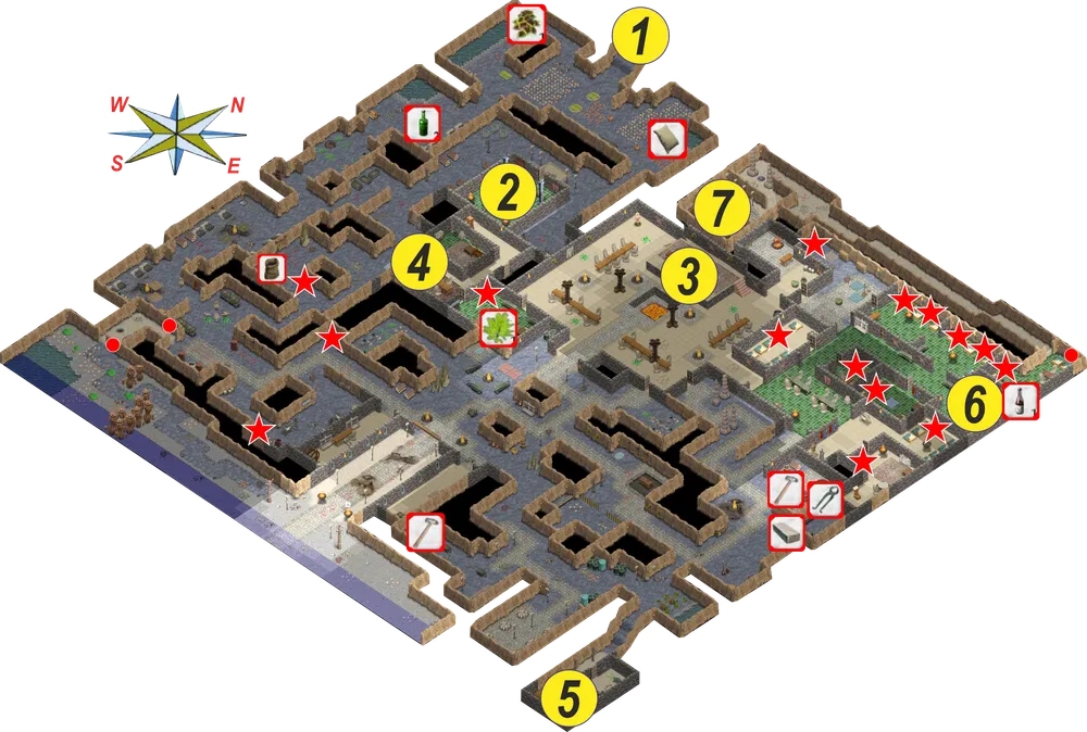 1 – переход в пещеру нефилимов. 2 – святыня нефилимов. 3 – главный зал. 4 – магический том. 5 – Арум. 6 – Шаррва. 7 – сокровищница.