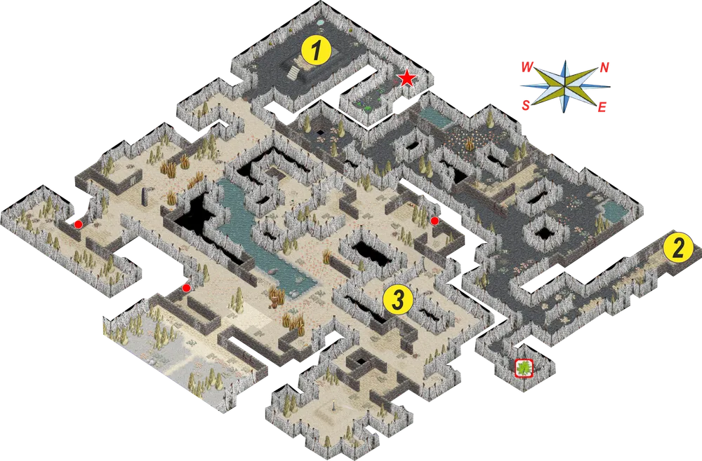 1 – гробница. 2 – запертые ворота. 3 – переход в замок нефилимов.