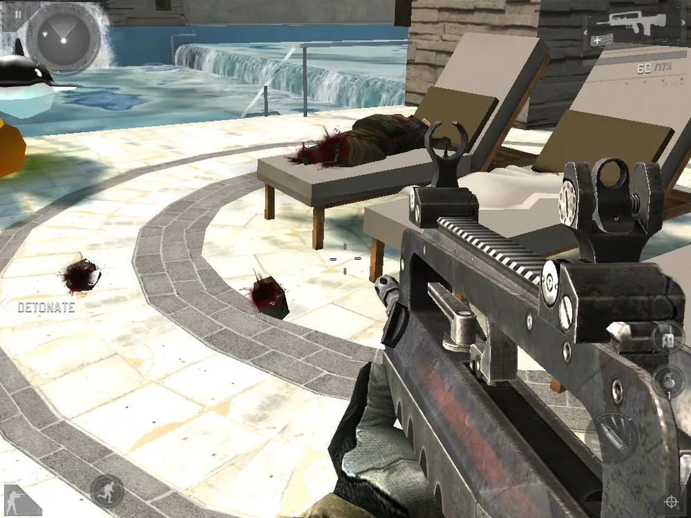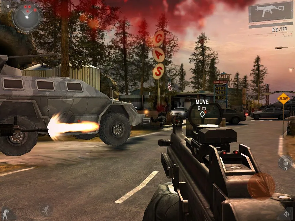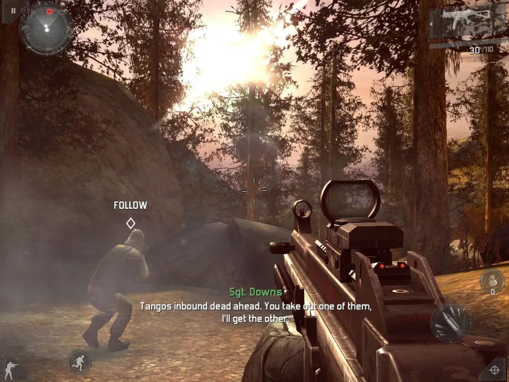 А теперь мы плавно переберемся к сетевой части игры. Я понимаю: сетевой шутер на мобильном устройстве - это многим может показаться смешным. Однако и тут игра не даёт себя в обиду. Если в цифрах, то нас ждет: по два типа DM и CTF, захват территории, обезвреживание бомбы и уничтожение оборудования. Для мобильного шутера - выбор приличный.