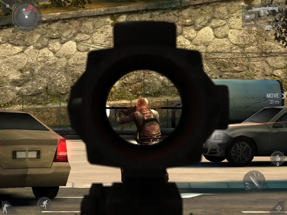 Все это многообразие спокойно мог испортить бич многих игр для тач-скринов - управление. Однако этого не произошло, хотя у правление идеальным назвать тоже сложно. Описывать это бессмысленно, ибо каждый игрок сам будет подбирать для себя расположение наэкранных кнопок, благо игра это позволяет. Ваш покорный выбрал первый вариант управления и чуть-чуть раскидал кнопочки по экрану. Левая рука - движение, правая - стрельба, обзор и т.п. Указательный палец отвечает за камеру и кнопки в верхней части экрана, большой - кнопки внизу экрана. Если насобачиться - очень удобно.