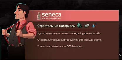 1. На старте мы можем выбрать один из 4 штабов, каждый из которых имеет свои преимущества, и связанные с ними особенности игры. В процессе игры мы развиваем свой штаб с 1 по 5 уровень, для повышения уровня каждый раз необходимо иметь определенное количество тех или иных ресурсов. На каждом уровне нам дают определенное количество заявок (на последнем уровне сложности игры – дают 3 заявки за каждый уровень штаба). За каждую заявку можно построить одно любое предприятие.