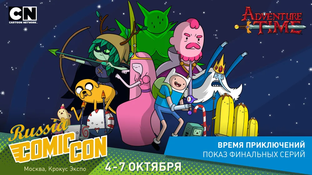 Чувак, натягивай треники «Забей-На-Жизнь», подкрепись Всяческим Буррито и отправляйся в невероятные приключения по Землям Ооо! В этом году на конвенте вместе с Cartoon Network будет показан спецвыпуск из четырех финальных серий мультсериала. Вот так, друже, время летит вперед, и сериал твоего детства подошел к концу. Смирись и повзрослей!