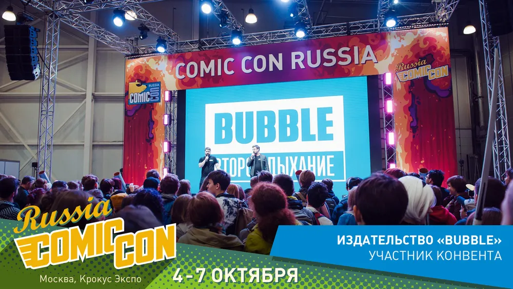Какой же комикс-конвент без самих создателей комиксов! Российское издательство BUBBLE много лет подряд выпускает качественные комиксы, настолки, фигурки, а теперь и фильмы. Начиная с самого первого российского Comic Con'а, оно принимало активнейшее участие в подготовке и проведении фестиваля, организовывало Аллею Авторов. Не станет исключением и предстоящий пятый Комик Кон.