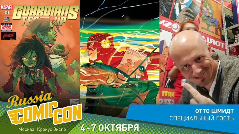 Отто Шмидт, иллюстратор российского происхождения, не в первый раз собирается приехать к нам на Comic Con. В прошлом году он уже был на фестивале и теперь вот снова готов порадовать российских любителей комиксов своим появлением. У Отто множество почитателей по всему миру, во многом благодаря серии Green Arrow для DC Comics. Кроме того, он успел поработать над сериями Guardians Team Up, Teen Titans, Harley Queen, Bаtmаn: Prelude To The Wedding и Nightwing. Недавно на русском языке вышел его комикс «Вселенная DC. Rebirth. Зеленая Стрела. Книга 1».
