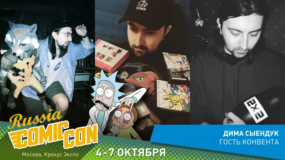 Время швифтануться! Автор канала Sndk Tv, голос Gravity Falls и Rick And Morty, переводчик комиксов, создатель Animatron Inc. и просто очень крутой чувак Дима Сыендук посетит в этом году российский Comic Con! В пятницу, 5 октября, он выступит на сцене фестиваля, а затем устроит автограф-сессию на стенде телеканала 2х2. Кроме этого, при его непосредственном участии состоится презентация анимационного сериала «Рик и Морти». В программе, кстати, демонстрация не только последнего эпизода второго сезона, но и... ВНИМАНИЕ!.. первого эпизода третьего сезона ДО его премьеры на 2x2.