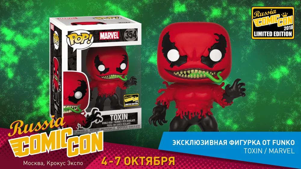 Привыкли, что эксклюзивные фигурки выпускаются исключительно для зарубежных выставок и фестивалей? Самое время начать отвыкать. Несравненные Funko POP! подготовили специально для российского Comic Con'а лимитированную фигурку симбионта Токсина из вселенной Mаrvеl. Если верить слухам, совсем скоро этот герой появится в фильме «Веном» в исполнении Рейда Скотта. Ну а его вещественное воплощение можно будет найти на стенде «1С Интерес». Вычислить уникального симбионта поможет наклейка «Comic Con Russia 2018 Limited Edition» на упаковке. Удачной вам охоты, коллекционеры!