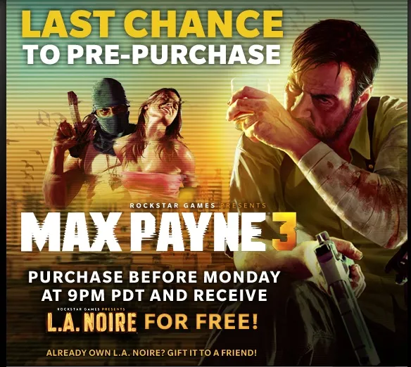 1С во всю готовится к релизу Max Payne 3 и не перестаёт радовать поклонников Макса новостями. На сей раз компания сообщает о возможности приобрести игру на день раньше релиза. 31 мая с 19:00 по местнoму врeмени и до завeршения рабoты магазина каждый покупатель сможет обзавестись своей копией третьей части культовой игровой серии. Вообще, вечерние предпродажи - явление для 1С вполне естественное, однако, то что софтклабовцы придумали на сей раз, ни в какое сравнение с предыдущими акциями не идёт.