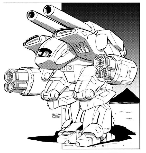 Итого: Четыре LRM 10 для дальних дистанциях, пара UAC/10 для сражений на средних дистанциях, четыре ER средних лазера обеспечивают мощный удар на ближней дистанции, и наконец, четыре пулемета обеспечивают противопехотную поддержку.