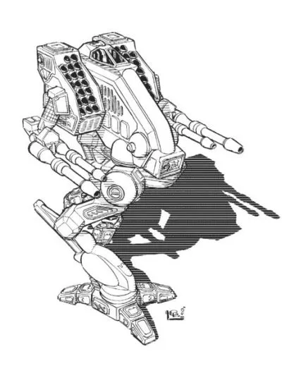 Кажется такой вид был придан ему намеренно, так как часто встречающаяся манера боя на нём - стоять на возвышенности, напоминая стервятника, поджидающего добычу. Огромные сдвоенные ракетные стойки на плечах придают меху сгорбленный вид, и общий внешний вид мало меняется при установке большинства других оружейных модулей.