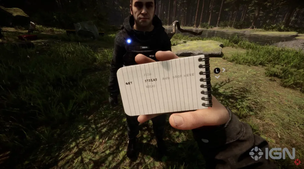 Так как он теперь не слышит, то взаимодействовать с ним придётся через команды, меню которых представлено в виде блокнота. Игрок выбирает опцию, после чего герой записывает её на листке и демонстрирует Келвину.