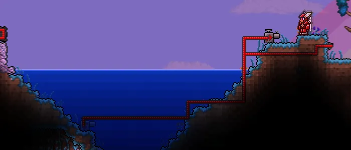 Никак не пойму что вызвало проблему с трубами у некоторых игроков, ведь всё очень просто. Помещаем входную трубу в жидкость, выходную - на поверхность, соединяем проводом, подключаем к системе триггер (кнопка, рычаг, таймер), всё. Работает.