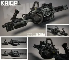 Kaiga 5.56mm M404 Heavy Rifle -вот и он, король огневой мощи. Карающий меч тех, то плевал на скрытность и гуманизм. Несколько стволов для скоростной стрельбы в стиле гатлинга. Детище российской фирмы Kaiga Incorporated Ltd использует патроны 5.56x45mm и "Flüssig Kühl - Effekt", систему жидкого охлаждения. Миниган работает за счет газа, как и российские пулеметы системы гатлинга («система с вращающимся блоком стволов») и не нуждается в электрическом двигателе, или другом внешнем источнике питания. Благодаря этому факту, миниган хоть и легче, чем мог бы быть, однако, в его задней части расположены два противовеса для погашения сильной отдачи. ВАЖНО: Не забывайте, что этому монстру нужна пара секунд для разогрева.