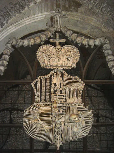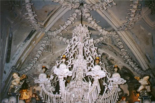 Чума оставила немало свидетельств своей беспощадной деятельности. Несколько веков назад немалая часть Европы превратилась в один сплошной некрополь. В тот момент, когда очередное кладбище переполнялось, кости приходилось выкапывать из земли и устраивать импровизированные склады. Во многих провинциальных европейских городках до сих пор подвалы часовен завалены черепами жертв эпидемии. Костехранилище в Чехии – склад особый, в XVIII веке к разбору "средневекового наследства" подошли с фантазией и безусловным цинизмом. Известный на тот момент резчик по дереву создал для князя Шварценберга дизайн интерьера, сплошь состоявший из костей. Наибольшее впечатление производят стены из аккуратно уложенных черепов, но и герб Шварценбергов, собранный из костей, также мало кого оставит равнодушным.