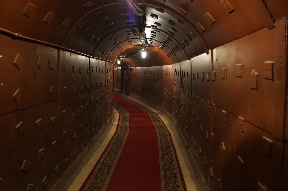 Ощущения, надо сказать, непередаваемые. “Мижповерховий дротохид” медленно опускался вниз, слегка вибрируя и поскрипывая механизмами, установленными в дремучие советские времена. Десять, двадцать, тридцать секунд… Минута прошла, полторы, а лифт все ехал себе и ехал, пока вдруг резко не затормозил.“Ну все” – подумал я, с грустью посматривая на стационарный телефон экстренной связи, - “Адское шайтан-устройство по доставке человека с поверхности в преисподнюю сделало свое грязное дело”. Но пронесло – в хорошем смысле этого слова. Тяжеленые дверцы открылись и выпустили меня наружу. “Наружа” встретила меня мертвенным холодом, обитыми стальными листами стенами и переплетением технических проходов. Но я не заблудился, не сгинул в какой-нибудь боковой штольне или шахте – спасибо моей интуиции, красной ковровой дорожке, почти прямому коридору и многочисленным стрелочкам да указателям, развешенным добрыми людьми из Wargaming.net.