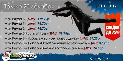 20 и 21 декабря Макс Пейн будет карать и страдать со скидкой до 75%