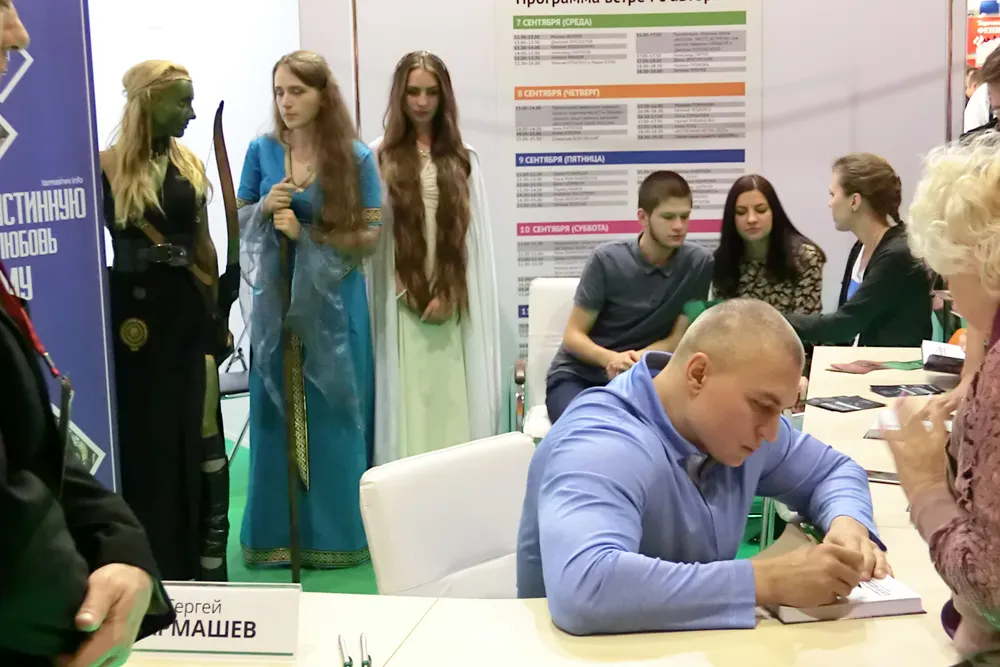 Хорошо сказано, верно? Правда, я не совсем согласен с Алексеем Максимовичем: с моей точки зрения, чудом является не каждая книга, равно как и не каждый писатель – магом. Однако время от времени – если повезёт! – с настоящими писателями-магами можно встретиться лицом к лицу, задать вопросы, послушать ответы и купить их чудесные или просто хорошие творения. Именно поэтому вот уже несколько лет подряд я стараюсь не пропускать ежегодную книжную ярмарку на ВДНХ… Кстати, прошу прощения у всех читателей: отчёт нужно было выложить давным-давно, но эта осень настолько насыщена событиями, что я просто не успеваю сделать в срок всё, что задумано. Приступим!