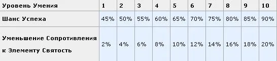 • Описание: Уменьшает сопротивление к элементу Святость всех врагов на экране.