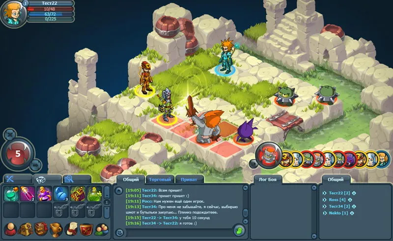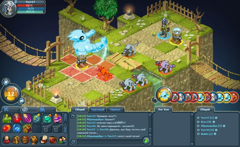 -Тактика боя немного нехарактерна для онлайн игр - пошаговый бой. На поле вы ставите своего героя и шаг за шагом атакуете противника. В вашем арсенале множество заклинаний, эллексиров и свитков. Вы можете разработать свою неповторимю тактику боя.